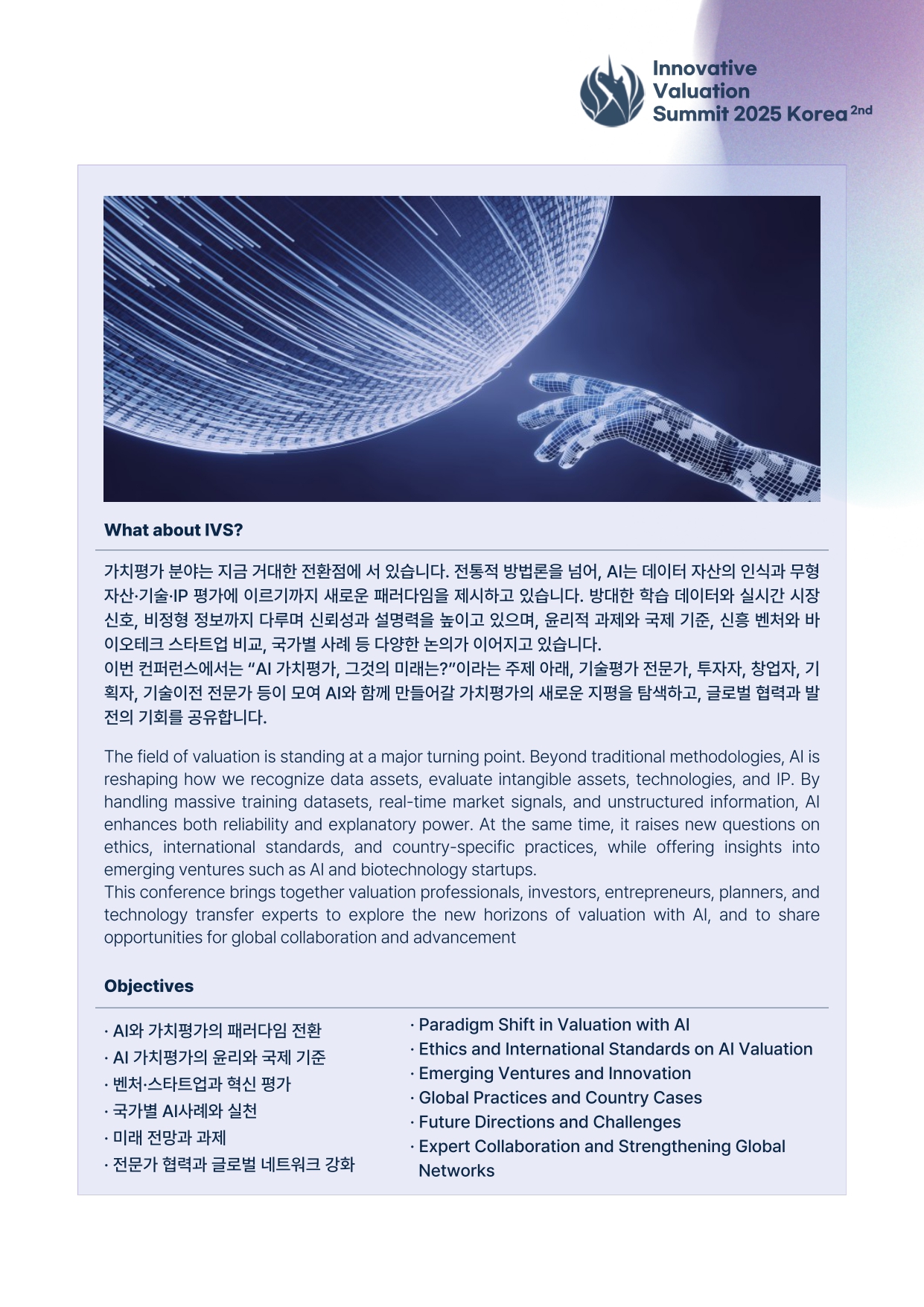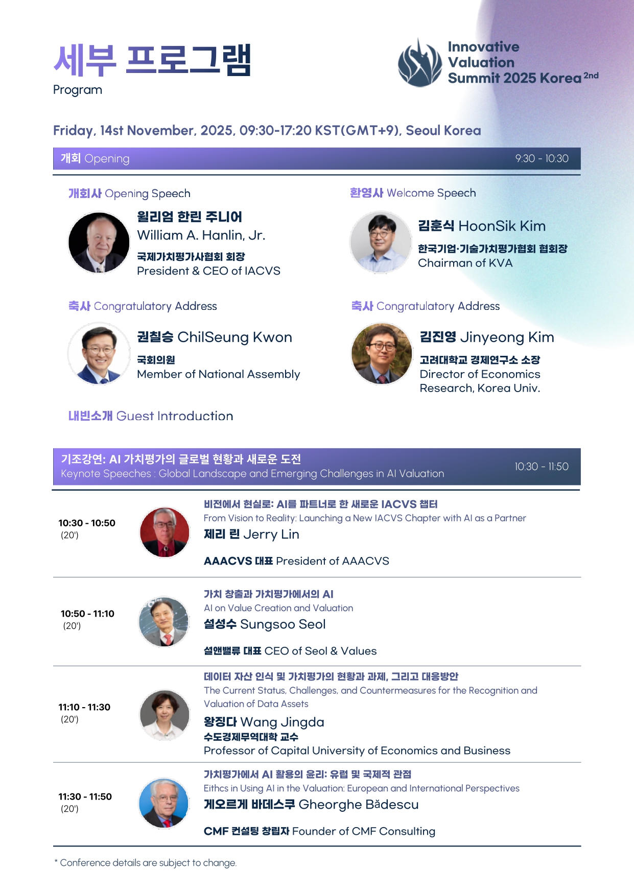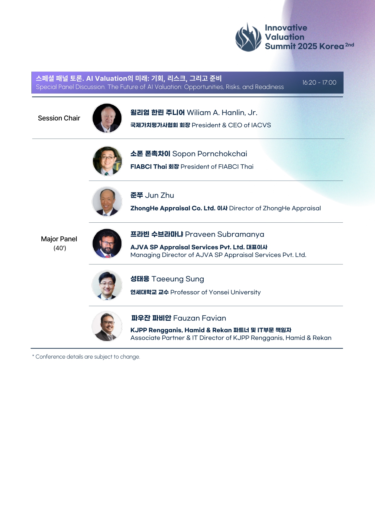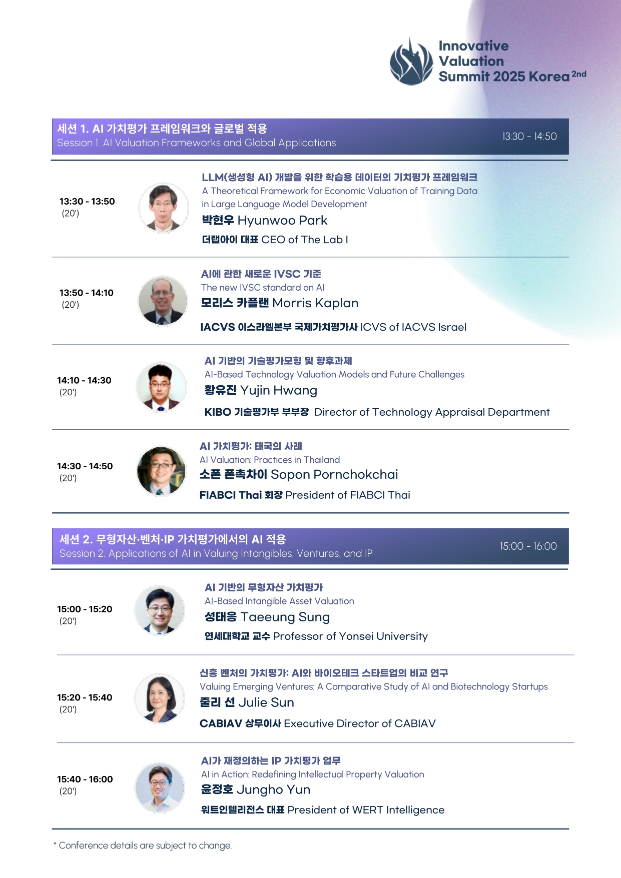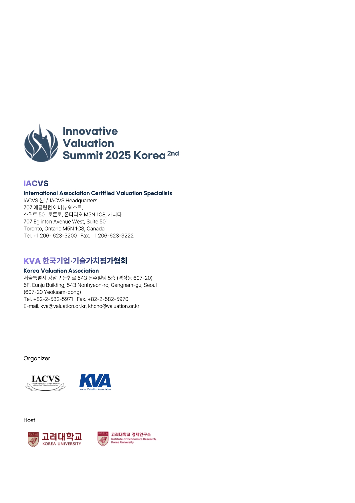 Please consider to join a great conference, Innovative Valuation Summit (IVS) 2025 in Seoul, Korea, during November 13-15, 2025. You can contact the following: