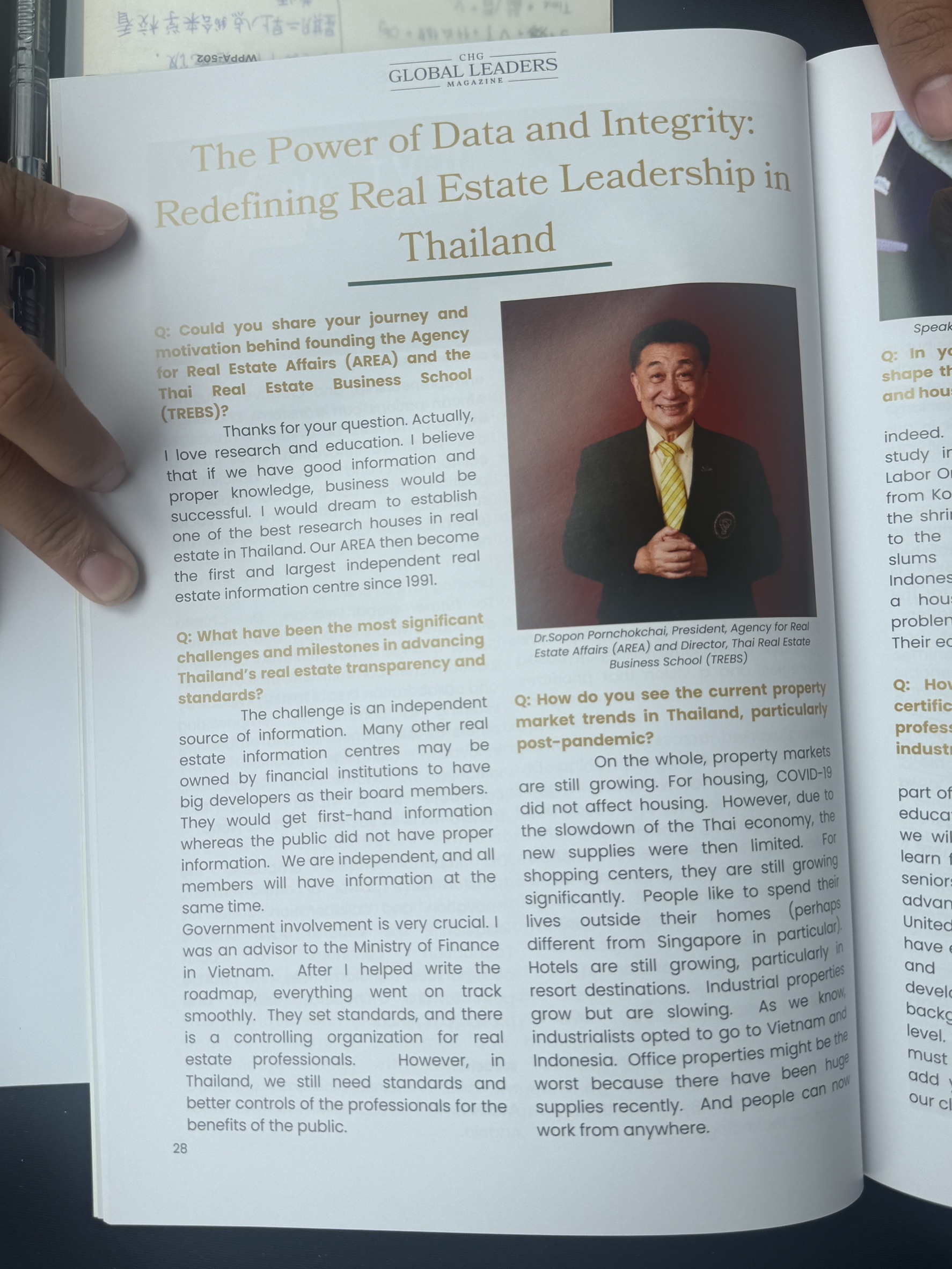 AREA Press Release No. 1099: Dr.Sopon Appearing at the Global Leaders Magazine