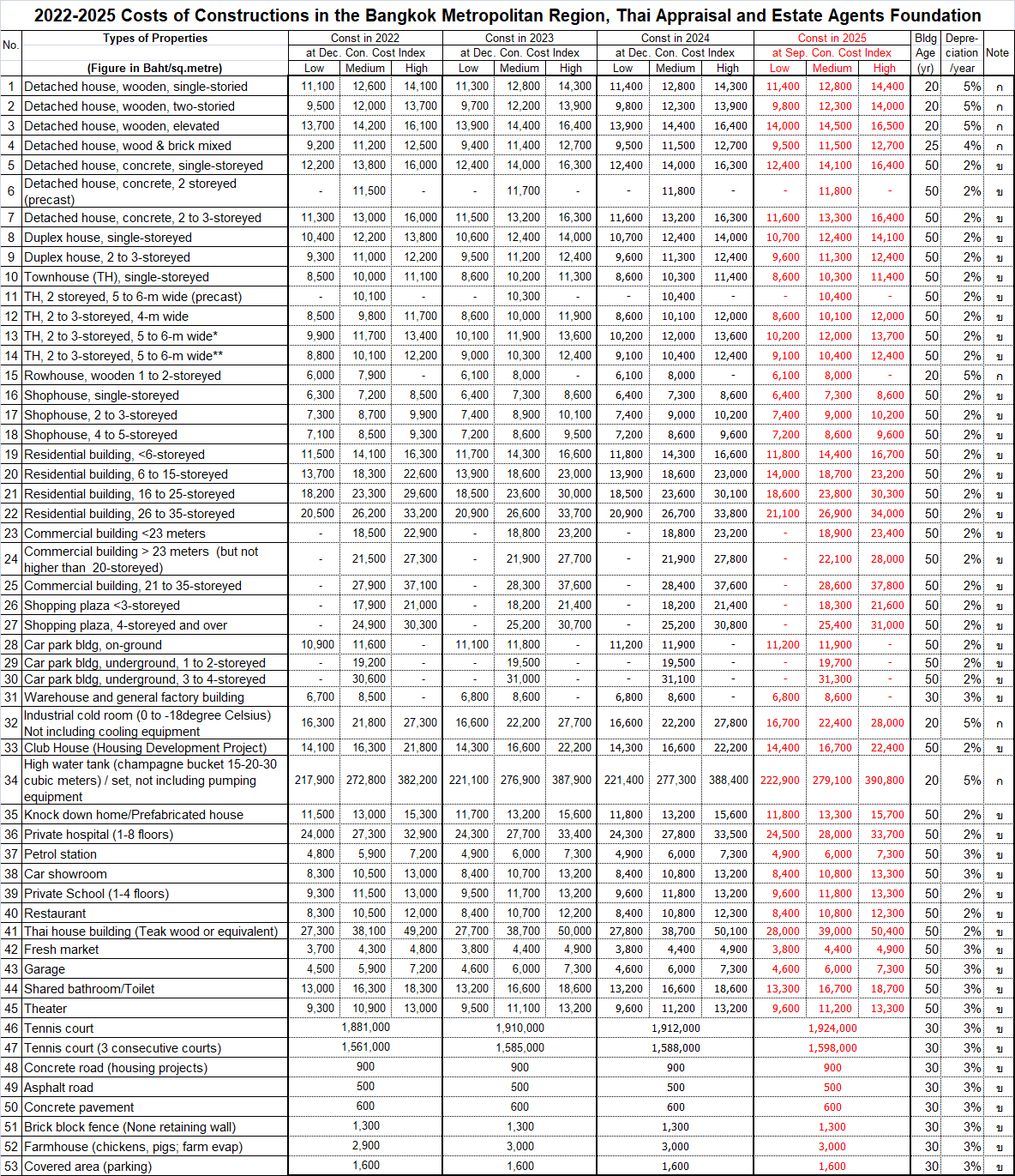 รายละเอียดของราคาค่าก่อสร้างอาคารเป็นดังนี้: https://www.thaiappraisal.org/thai/value/value.php