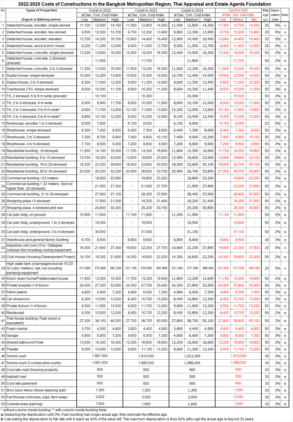 มูลนิธิประเมินค่า-นายหน้าแห่งประเทศไทยได้จัดทำราคาค่าก่อสร้างอาคารอย่างต่อเนื่องตั้งแต่ปี 2556 โดยเป็นโครงการที่ริเริ่มโดย ดร.โสภณ พรโชคชัย ซึ่งได้ดำเนินการสำรวจและจัดทำข้อมูลราคาค่าก่อสร้างอย่างเป็นระบบ พร้อมปรับปรุงข้อมูลเป็นรายไตรมาส เพื่อให้เป็นข้อมูลประกอบการประเมินค่าทรัพย์สินที่เป็นประโยชน์ต่อนักประเมิน ประชาชน และนักลงทุนทั่วไป